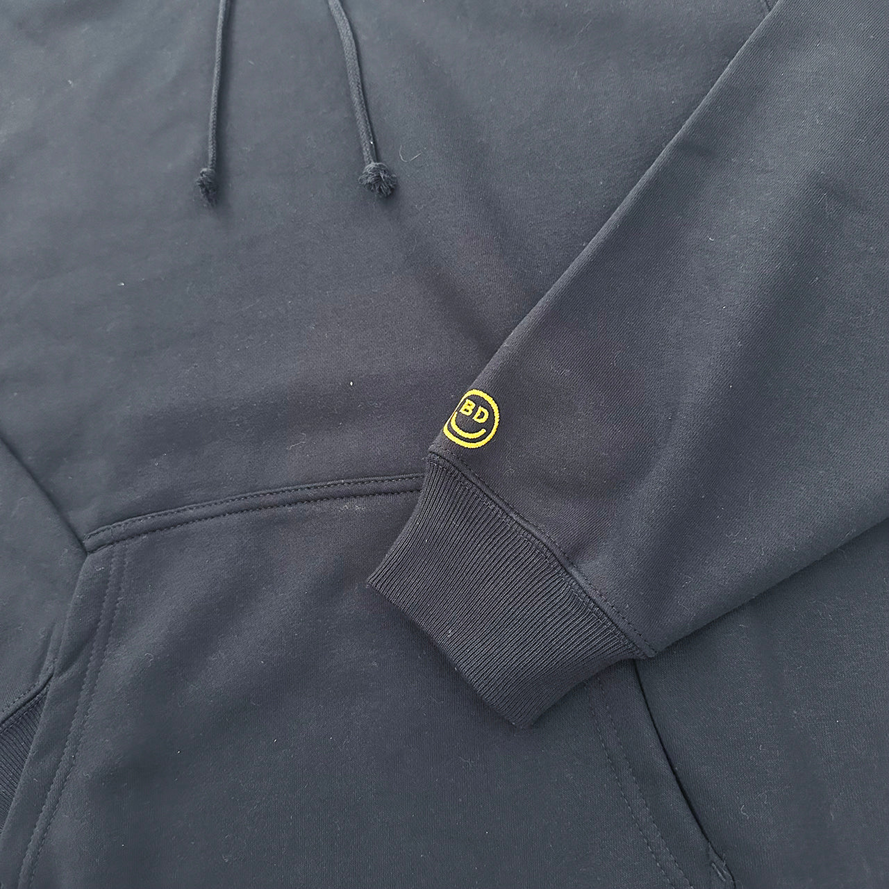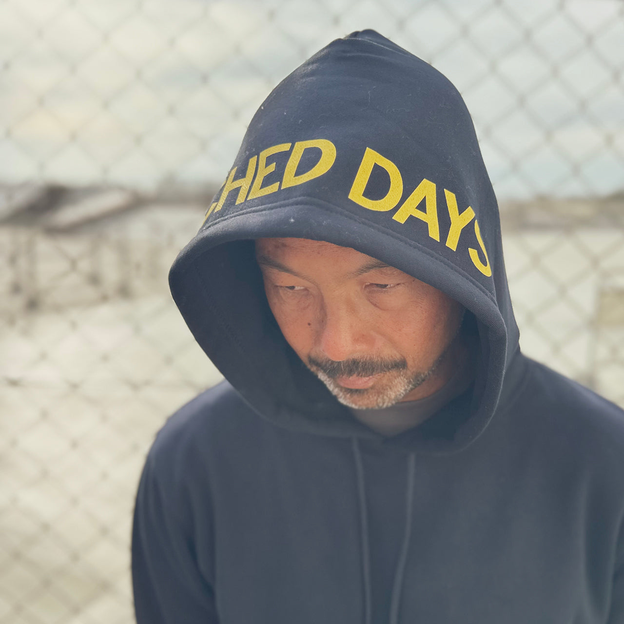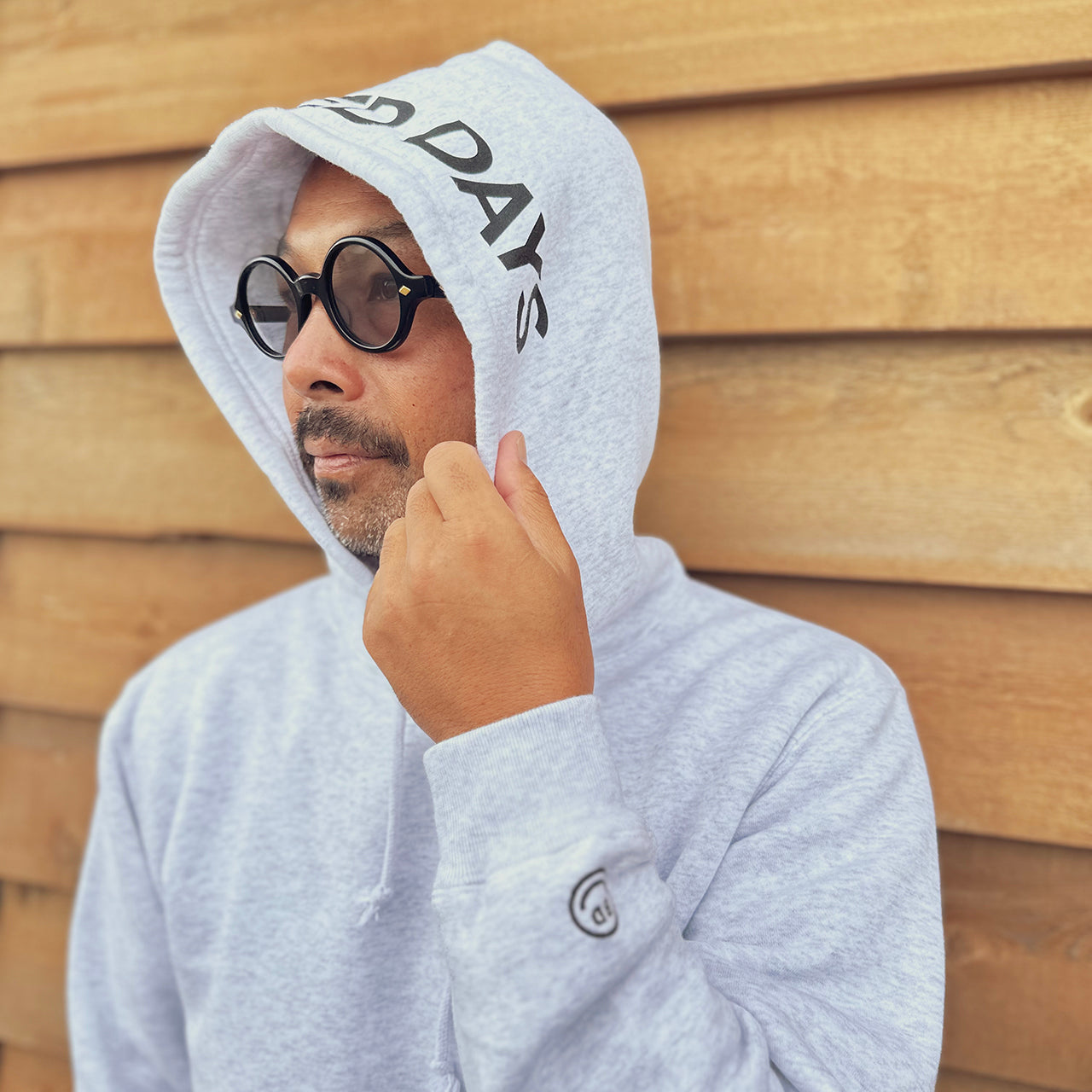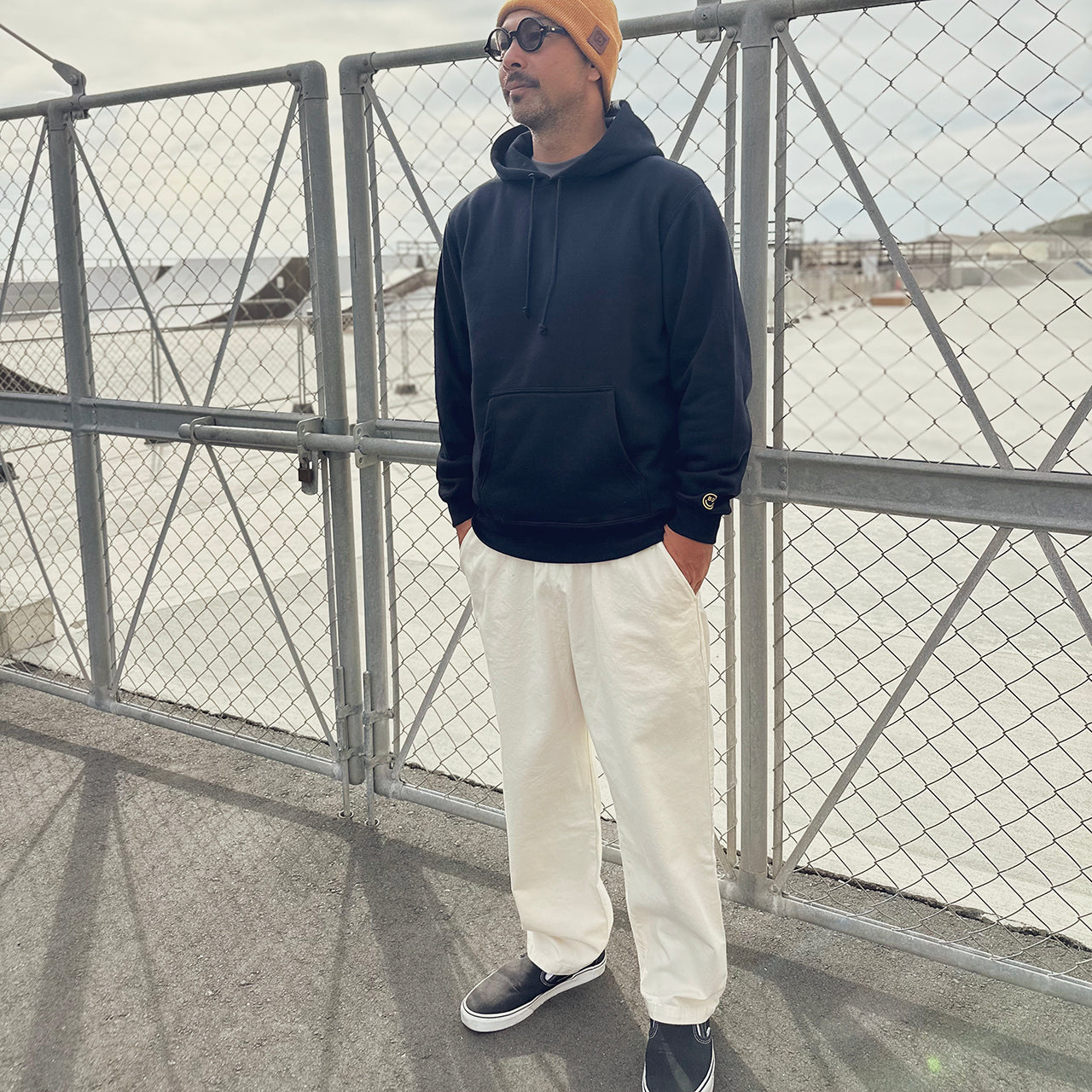 見た目は無地のフーディーと思いきや、フード部分にBEACHED DAYSのロゴをレイアウト袖には刺繍スマイルロゴ、90'sのストリートスタイルアゲインでフードを被るスタイルが◎