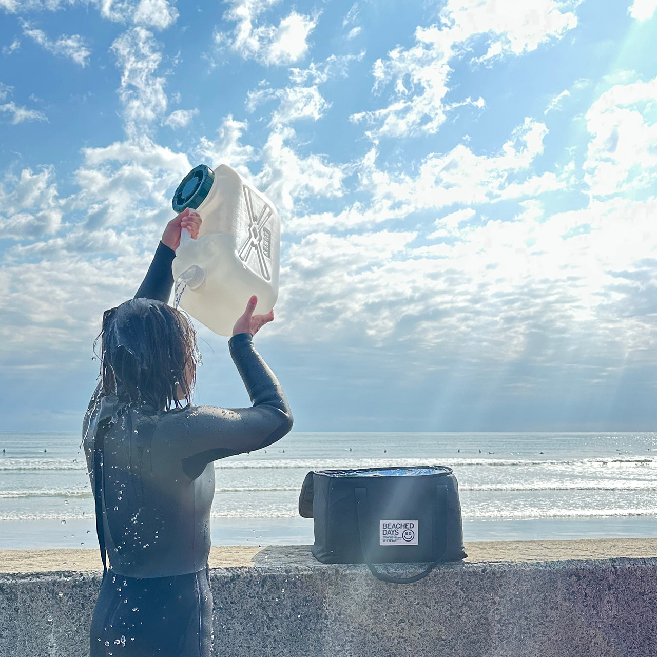 It has two large 10L plastic containers that can store a total of 20L, making it perfect for surfing and outdoor activities!