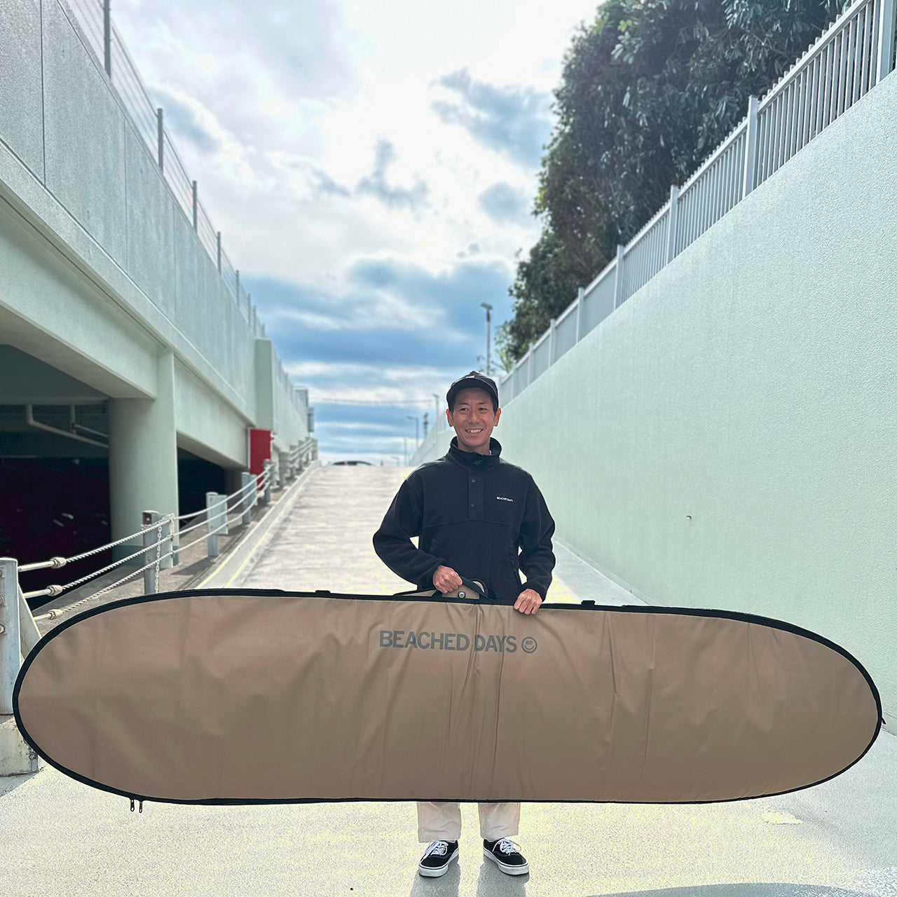 This board bag has a simple design that eliminates unnecessary features and is finished in a matte sand beige color, giving it a BEACHED DAYS style.