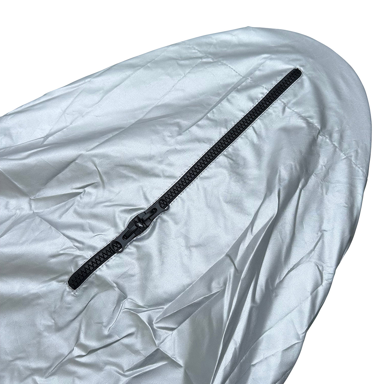 It is made of silver fabric with excellent light-blocking properties, and the zipper part of the fin slot has a backing so you don't have to worry about the zipper hitting your board!
