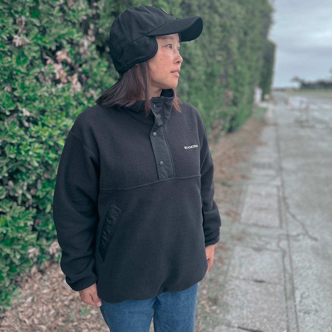 フラップを折り返してスッキリ被ってもよし、フリース部分を下げれば耳まで暖かく防寒性も抜群!