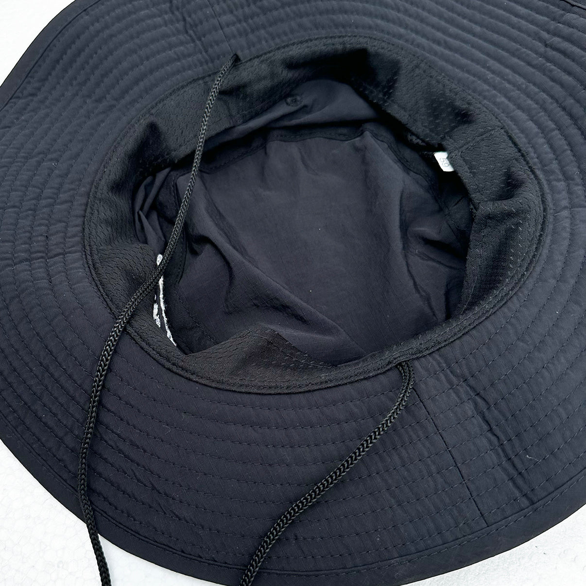 風やサーフィン時のとっさの波にキャップが飛ばされない様、ヒモはガッチリ縫い込んでおります。(取り外しは出来ません)