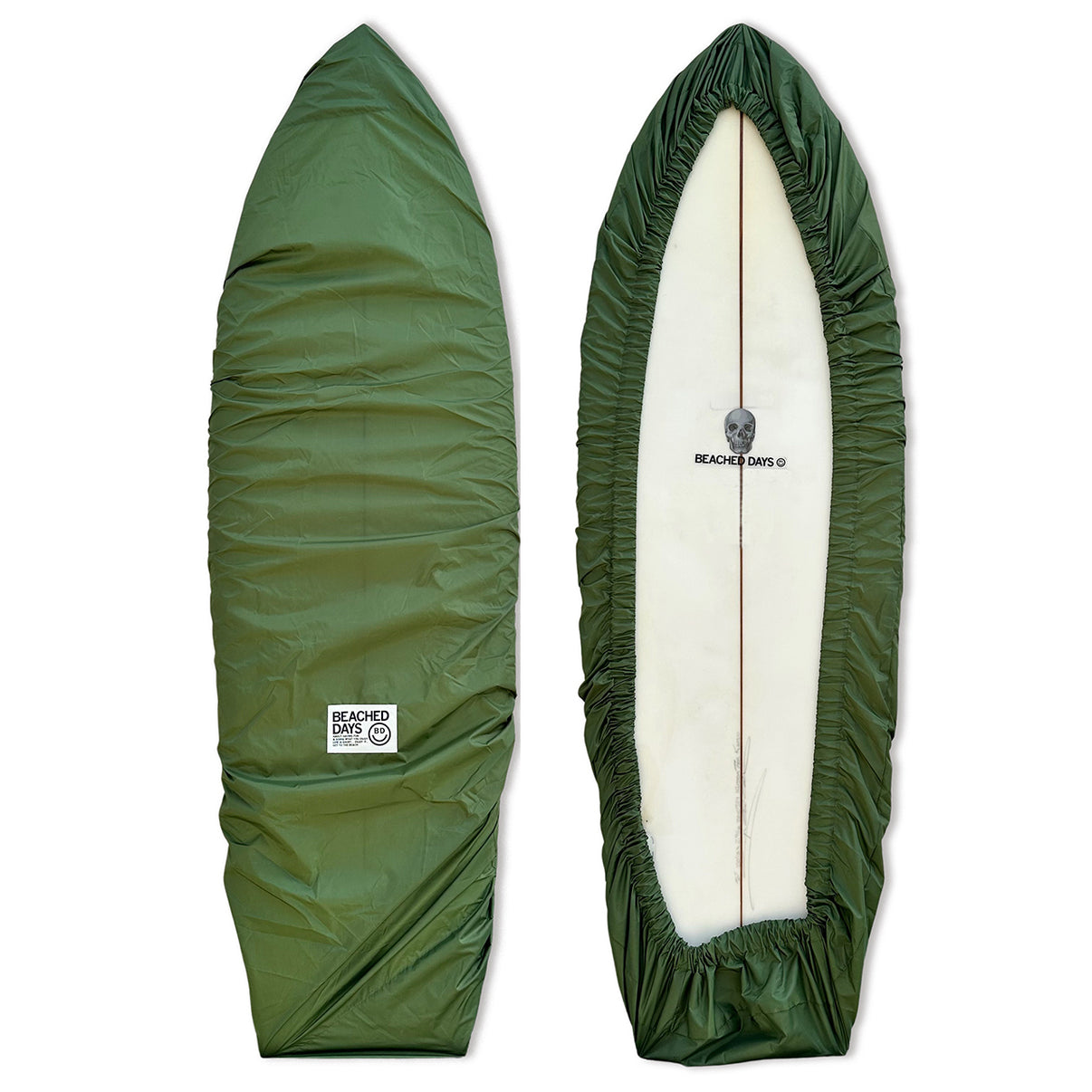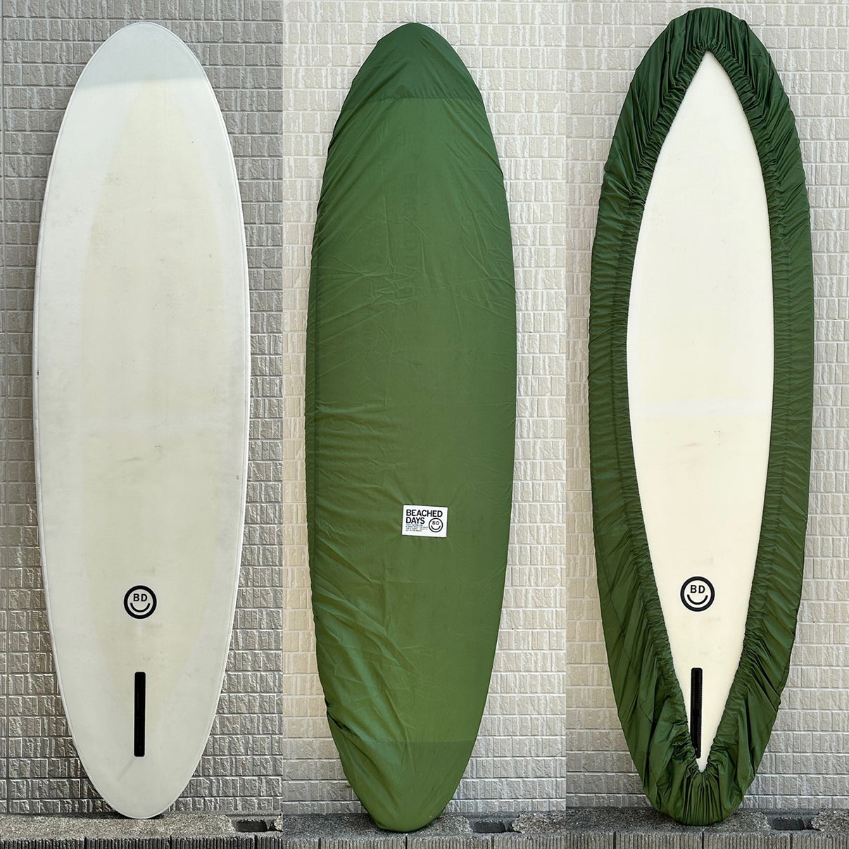 BEACHED DAYSのデッキカバーは ロングボード(8'5-10'0ft)、ミッドレングス(6'7-8'4ft)、ショートボード(5'0-6'6ft)の3サイズをご用意しております。すべてのデッキカバーは幅広い形状のボードにフィットするよう、強力なゴムを使用しております。