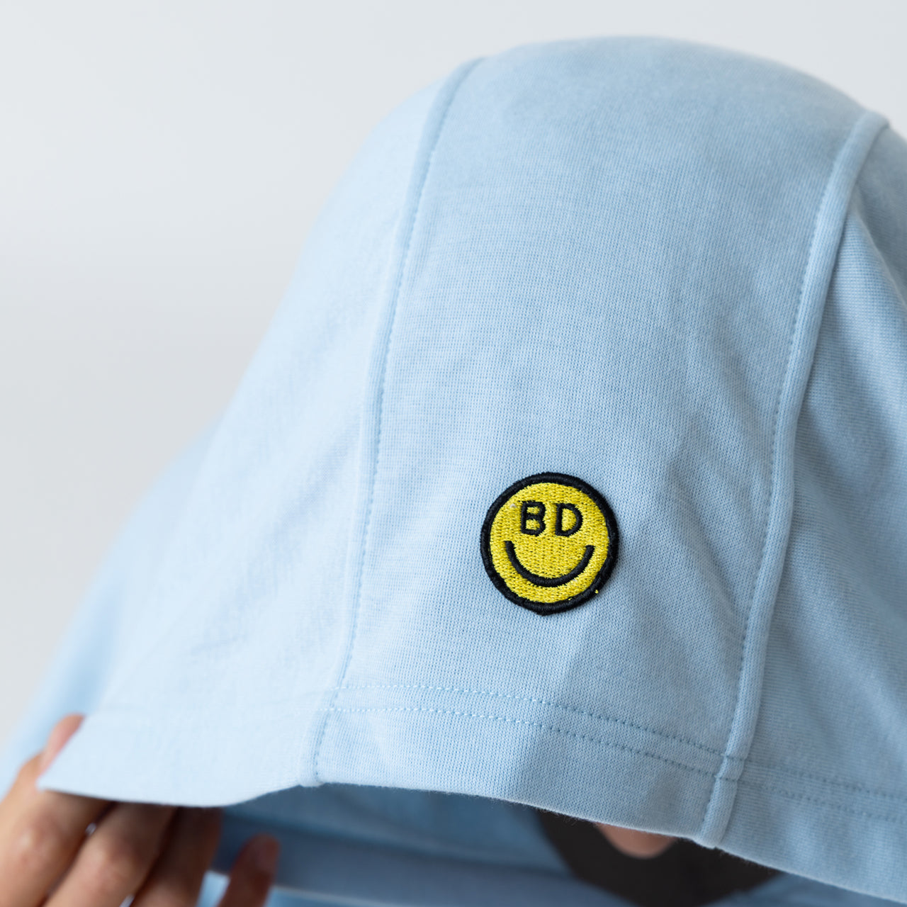 フードにはBeached Daysのアイコン、スマイルマークの刺繍をあしらい、遊び心のあるワンポイントに。